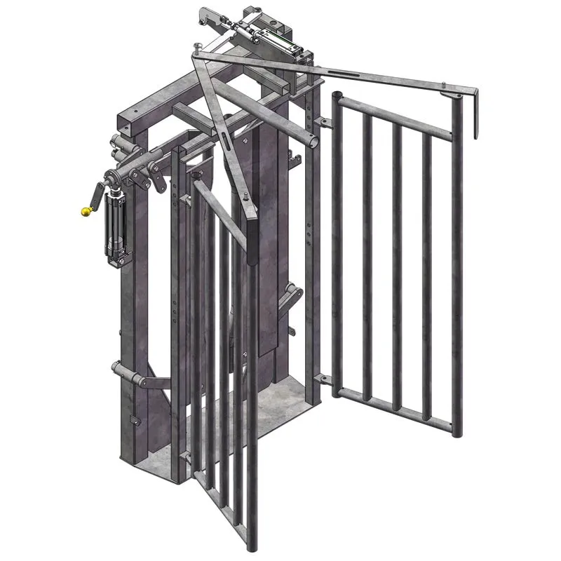 - Federunterstützter Griff zur Einstellung der Halsweite je nach Rasse und Alter der Rinder.